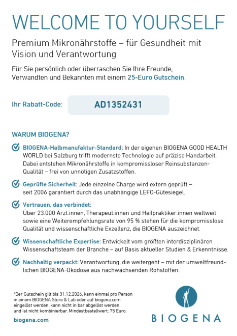 25.- EURO BIOGENA GUTSCHEIN SICHERN